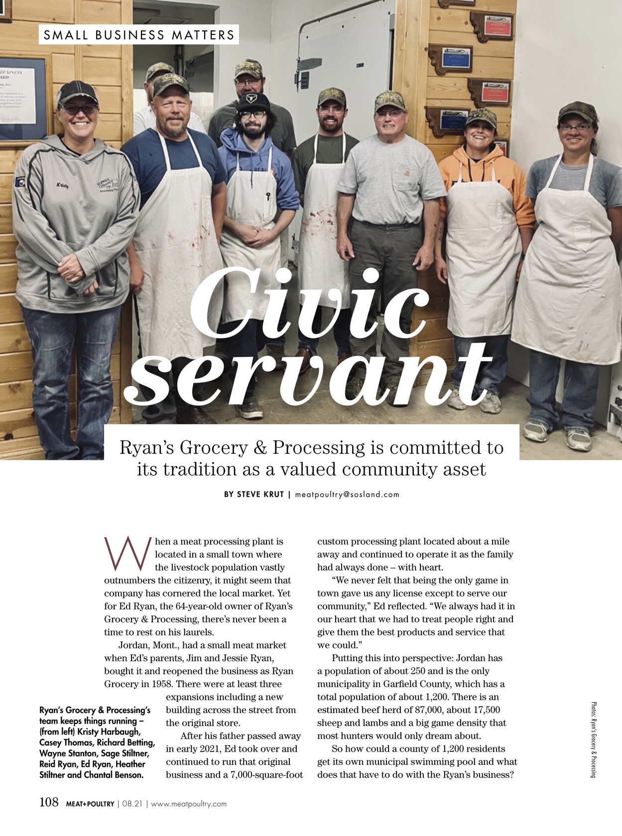 Ryan Grocery and Processing, located in Jordan, Montana, has been a family owned & operated business for over 60 years. James (Jim) Ryan, an Air Force Veteran, returned to Montana after the Korean War and began working at a packing plant in Billings before starting his own grocery store in his hometown of Jordan. Initially founded in 1958 by Jim, and his wife, Jessie Ryan, Ryan Grocery and Processing continues to serve the community and the surrounding area under the leadership of Jim’s son Ed Ryan, and grandson, Reid Ryan.