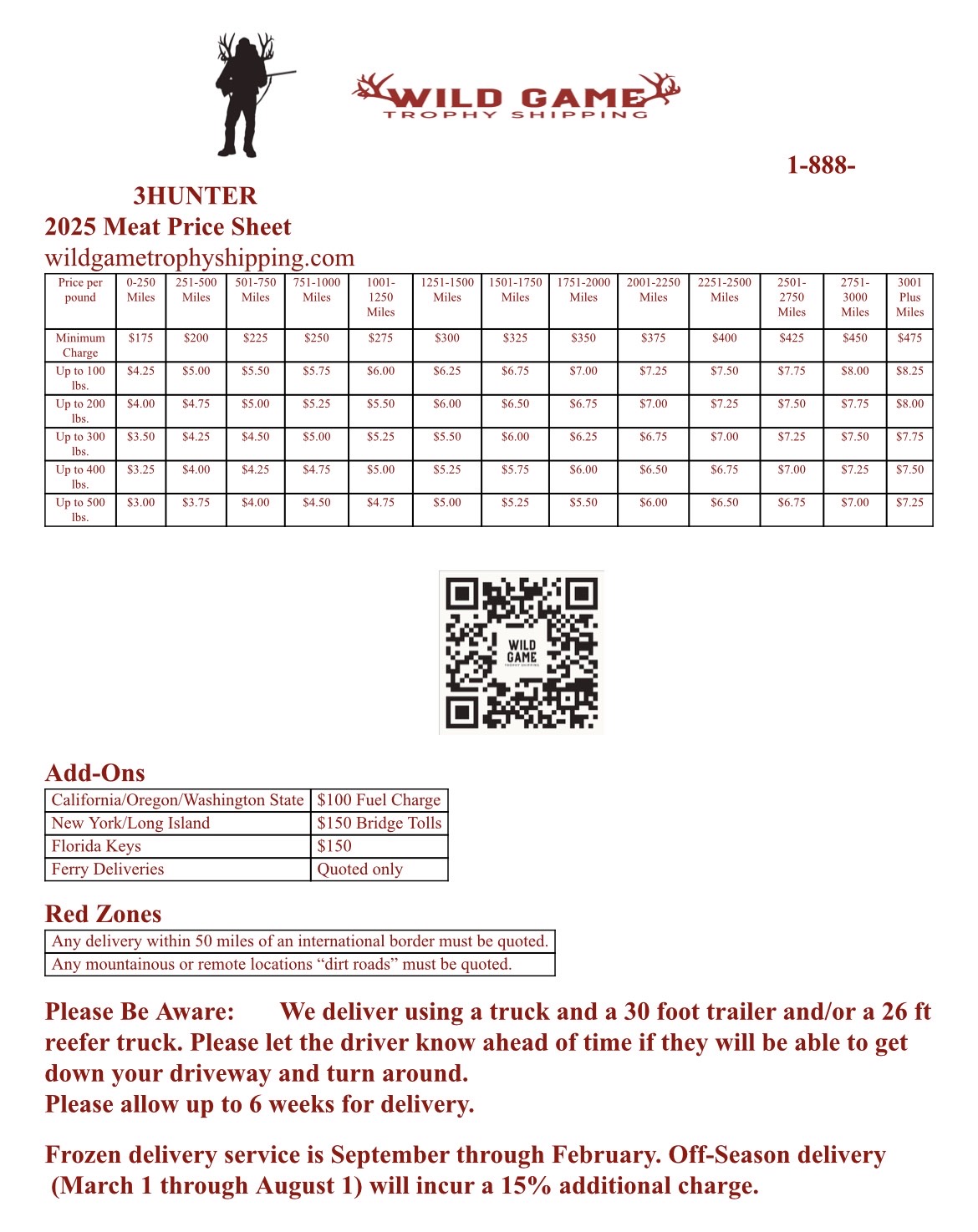 Their team offers a shipping experience that goes above and beyond what we can provide in-house. With their expertise, you can count on fast, secure delivery of your wild game meat — and enjoy straightforward, transparent pricing.